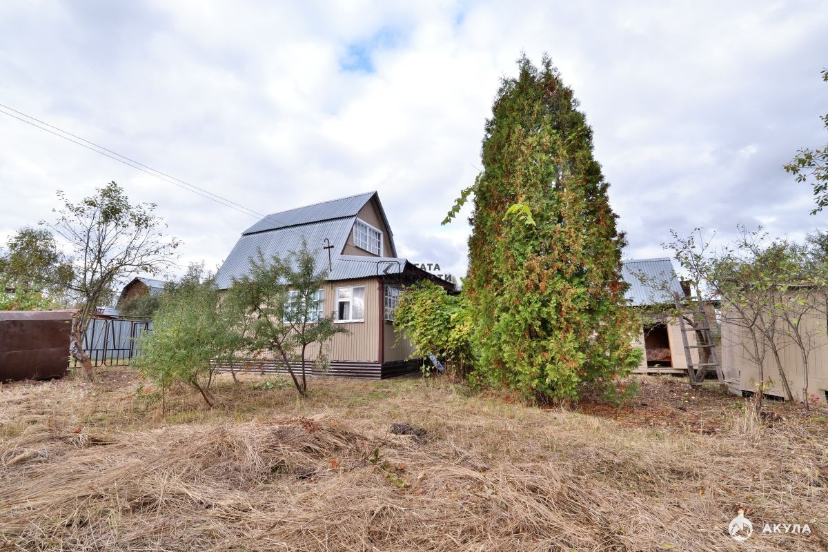 Участок угловой, имеет только 2 соседей и подъезд с двух сторон. Участок высокий, сухой. На участке множество плодовых деревьев (калина, виноград, облепиха), живая изгородь. Есть заезд для автомобиля, ворота. Есть железный хозблок, гараж. Расположение дома и форма участка позволяет строить новый дом, не ломая и продолжая использовать старый.