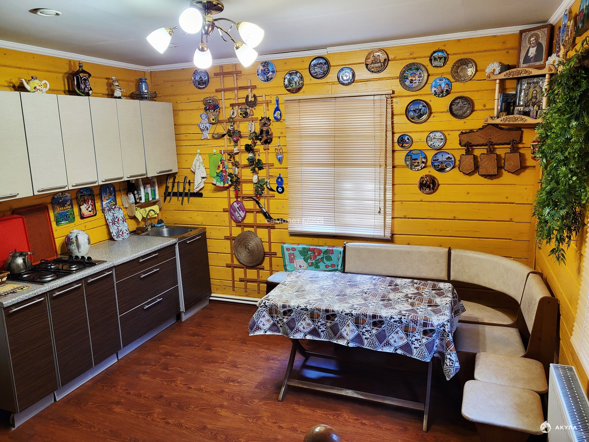Двухэтажный дом, общей площадью 160кв.м., состоит из кухни 20кв.м. и трех комнат (40+30+30кв.м.) Построен из бруса, обшит плитой.