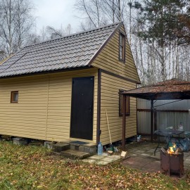 #12848 (840) Дача 20 м² на участке 8 сот. О даче Количество комнат: 1 Площадь дома: 20 м² Площадь участка: 8 сот. Этажей в доме: 1 Для отдыха: баня или сауна Категория земель: садовое некоммерческое товарищество (СНТ) Материал стен: брус Санузел: на улице Коммуникации:...